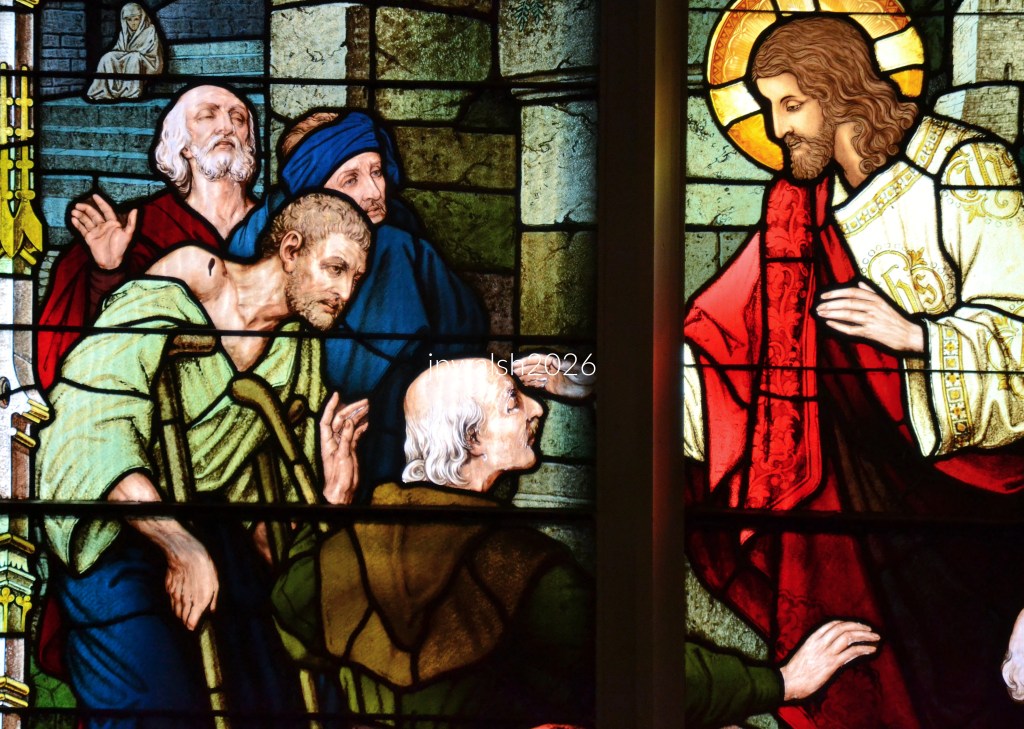 Zettler window of Jesus’s ministry of healing miracles. Author’s photograph. September 2015.