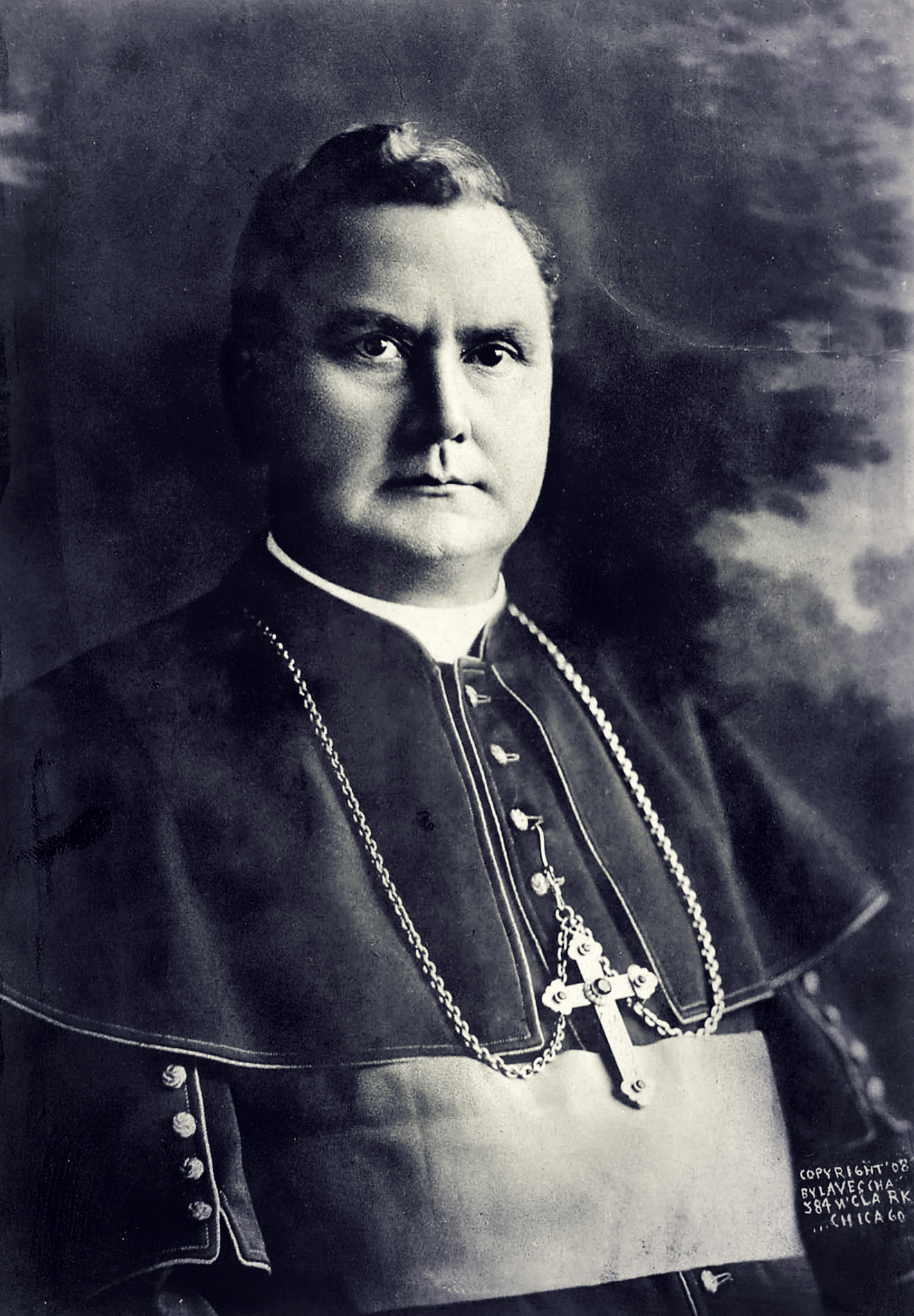 Most Rev. James Quigley, Archbishop of Chicago (1903-1915). In 1907 Archbishop Quigley traveled by car to Oak Park to attend the opening. Public domain.
