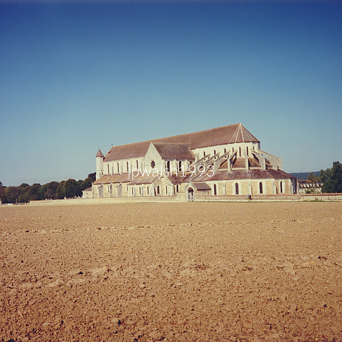Abbey of Pontigny, view from south. The Cistercian abbey of Pontigny in France was a refuge for England’s persecuted archbishops, including Stephen Langton (c. 1150–1228), and Saints Thomas Becket (1120-1170) and Edmund of Canterbury (c. 1174–1240). Author’s photograph, September 1993.