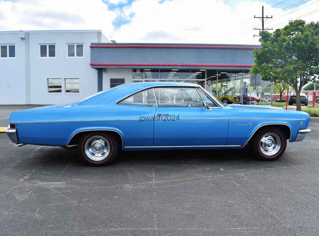 The 1966 Impala was a mild restyle of the 1965, featuring a new instrument panel, grille, wheel covers (except for SS models), and, instead of six round taillights, rectangular taillights that wrapped around to the side of the quarter panels. May 2024. 79% 7.85mb Author’s photograph.