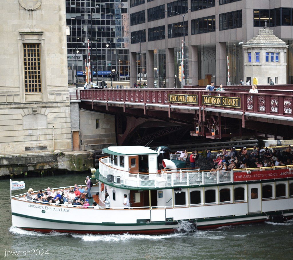 The Burnham Plan, co-authored by Daniel H. Burnham (1846-1912) and Edward H. Bennett (1874-1954) and published in 1909 encouraged making the Chicago River a focal point of building development. By 1929 massive projects including the Merchandise Mart, Chicago Daily News Building (2 N. Riverside Plaza) and Civic Opera Building (above) stood along the intersection of the three branches of the Chicago River that was part of the plan.