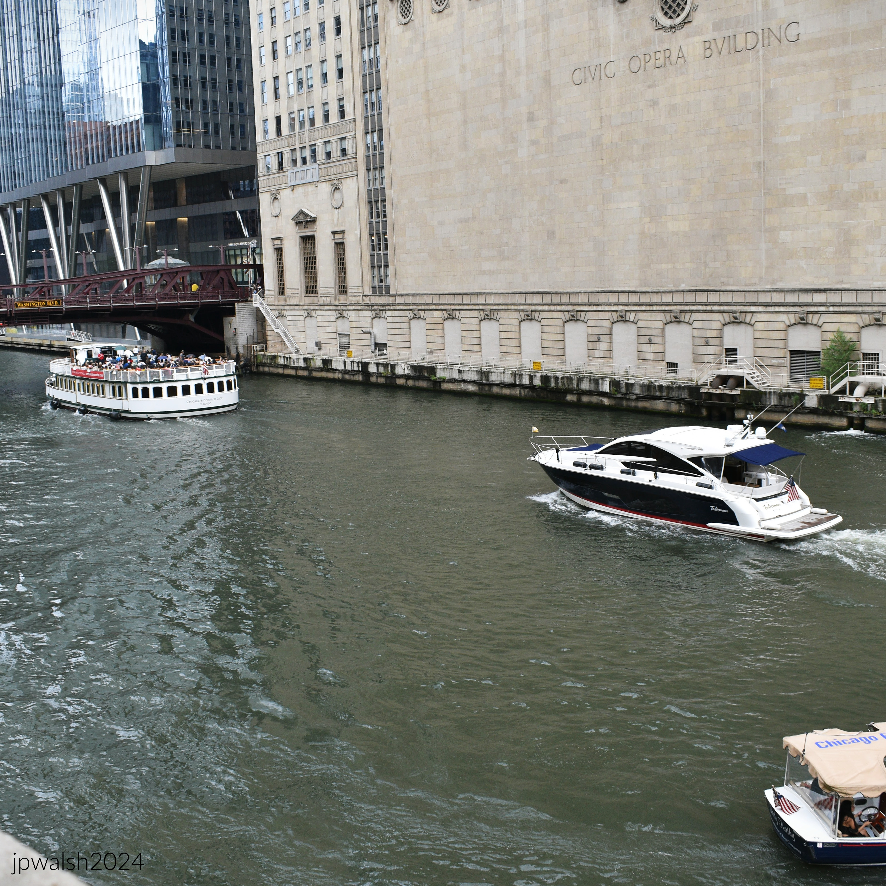 The Burnham Plan, co-authored by Daniel H. Burnham (1846-1912) and Edward H. Bennett (1874-1954) and published in 1909 encouraged making the Chicago River a focal point of building development. By 1929 massive projects including the Merchandise Mart, Chicago Daily News Building (2 N. Riverside Plaza) and Civic Opera Building (above) stood along the intersection of the three branches of the Chicago River that was part of the plan.