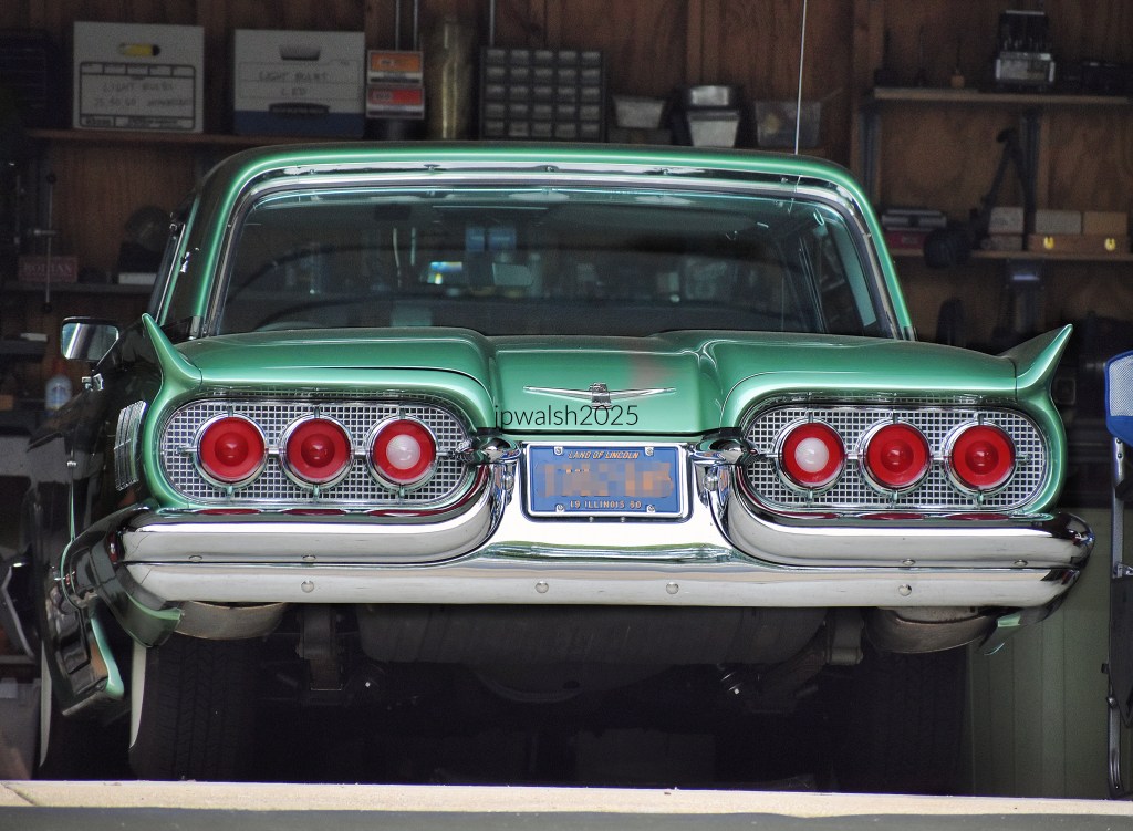 June 2023. 1964 Ford T-bird 7.35mb (70) 1964 Ford Thunderbird Convertible with chrome headlights, grill, and bumper along with the Thunderbird hood script. The car is finished in “Rangoon Red” with black vinyl upholstery. Particular Thunderbirds were powered by a 390ci V8 engine joined with Ford’s 3-speed “Cruise-O-Matic” auto transmission. There are bucket seats upfront. The Ford T-bird was produced across 11 generations between 1955 to 1997 and 2002 to 2005. Originally produced as an upscale 2 seater it was expanded in 1958 with a rear seat and became a personal luxury car that after 1968 was often rebadged by Lincoln-Mercury. September 2023.1964 Thunderbird. 92,456 Thunderbird’s were produced in 1964. 7.66 mb 78%March 2024. 1964 Thunderbird 87% 7.67mbJuly 2025. 1960 Ford 2-door hardtop T-bird. The year 1960 was the first year that American manufacturers produced compact cars to counter the popularity of the VW Beetle and other European and Japanese brands. Though Ford had its Falcon and slightly larger and better trimmed Comet, the move to the compact arena would never be the Ford Thunderbird’s route. In 1960 Ford pushed aside the boxy upright models of the late 1950’s for an overall lighter and sleeker appearance although the current body style of the Ford Thunderbird continued from 1958. This was the second generation of T-Bird and followed by its third generation in 1961. As a personal luxury car, the term Ford used, the Thunderbird was of a car category all its own. What started as a two-seater in 1955, the Thunderbird added a backseat in 1958 as the model became successively larger with each generation over the next 19 years. The car only had its first downsize in the seventh generation in 1977. In 1960 the 2-door Thunderbird’s taillights and side trim were among its notable changes from 1959. The base price of a hardtop was $3755 ($41000 today) – but you couldn’t buy that today – with the convertible costing about 10% more.See – American Cars,1960 to 1965, J Kelly Flory Jr. , 2023. pp. 41 and 45. 83% 7.80 mb DSC_9180