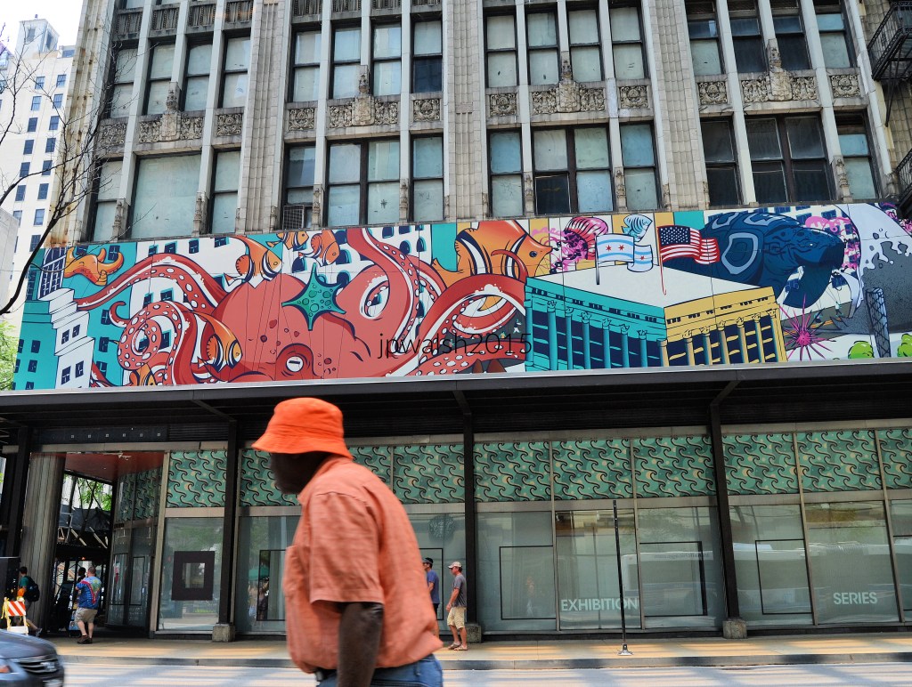 September 2001. Philadelphia, Pennsylvania 70% Progress of Women was completed by artists Larissa Preston Danowitz and Cesar Viveros and collaborators in 2001. At 1307 Locust Street the mural shows work of the New Century Guild to promote women in the workforce. At the top of the mural is the visage of Eliza Turner (1826-1903) who founded the New Century Guild in 1882 and lived in Philadelphia.October 2003. Corcoran Gallery of Art, Washington, D.C. The Renoir-inspired outdoor sculpture (“Dance at Bougival,” 1883, The Boston Museum of Fine Arts) was in conjunction with that year’s exhibition called “The Impressionist Tradition in America.” Closed in 2014, the former museum is today the Corcoran School of the Arts and Design, a part of the George Washington University. November 2017. Crown Fountain, Jaume Plensa [Krueck + Sexton Architects], Millennium Park, Chicago. 368kb 35%October 2015. Chicago. 4.48 mbJune 2018 Chicago. 4.65 mbJuly 2015. Chicago. 4.32 mbMay 2014. Chicago. 4.72 mbJune 2022. Chicago. 7.89 mb 86%December 2013. Chicago. 6.79 mbJune 2022. Chicago (Rogers Park). 4.20 mbJune 2022. Chicago. 7.66 mb 84%June 2022. Chicago 2.38 mb 50%June 2022. Chicago 11.71 mbAugust 2015. Chicago. 7.92 mb 96%August 2018. Chicago. 7.29 mbAugust 2015. Chicago. 5.26 mbOctober 2016. Chicago. Daniel Buren (b. 1938), Attrape-soleil, 2013. 4.49 mb.June 2022. Chicago (Englewood). 7.83 mb 87%August 2021. Chicago. 7.23 mb 99%2021. Chicago. 7.82 mb 90%May 2021. Chicago. Cloud Gate (“The Bean”), 2006, Anish Kapoor, Millennium Park. 7.97mb 97%July 2015. Chicago. 7.10 mbMarch 2014. Melrose Park, IL. 4.06mbApril 2013. Chicago. 1.07 mb 40% January 2024. Downers Grove, IL 7.75 mb 97%September 2015. Chicago. 5.82 mbApril 2013. Chicago (Pilsen). 3.46mbApril 2013. Chicago (Pilsen). 4.96mbApril 2013. Chicago (Pilsen). 4.63mbAugust 2024. Chicago. 87% 7.75 mb _1500 (1)October 2016. 99% 7.59 mb DSC_0828November 2017. Chicago. Opened in July 2004, Crown Fountain in Millennium Park was designed by Spanish artist Jaume Plensa (b. 1955) and executed by Krueck and Sexton Architects. 66% 7.91 mb DSC_3423April 2013. Chicago Pilsen. 4.89mb102_0165 (1)July 2015. Chicago 5.66mb DSC_0083 (1)