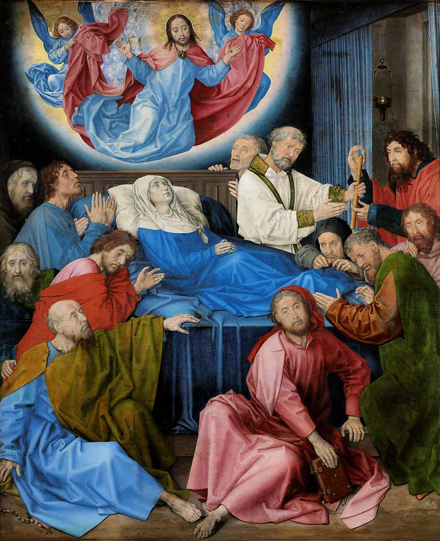 Around 1475 Hugo Van Der Goes became a lay brother in an Augustinian Priory, the Roode Cloister. Founded in 1367, the cloister is on the southeastern edge of modern Brussels. The artist continued to paint and receive visitors there, traveled to Louvain and Cologne, and died in 1482.