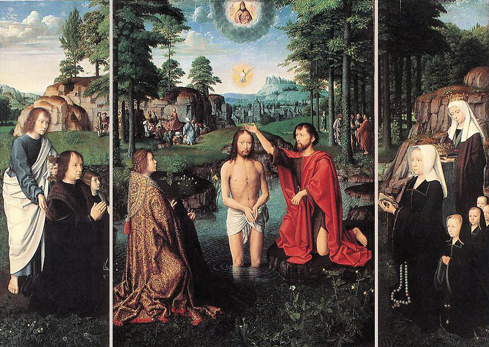 Hans Memling was a German, born near Frankfurt-am-Main. Memling was likely a student of Rogier van der Weyden and completely Netherlandish in his artistic style. Memling lived in Bruges and became a citizen in 1465. By 1480 the successful artist was one Bruges denizen who was paying the city’s largest amount of taxes. Though not innovative, Memling’s artwork depicts calm and peaceful figures full of piety. Memling also painted portraits successfully. Examples of his artwork are in collections all over the world.