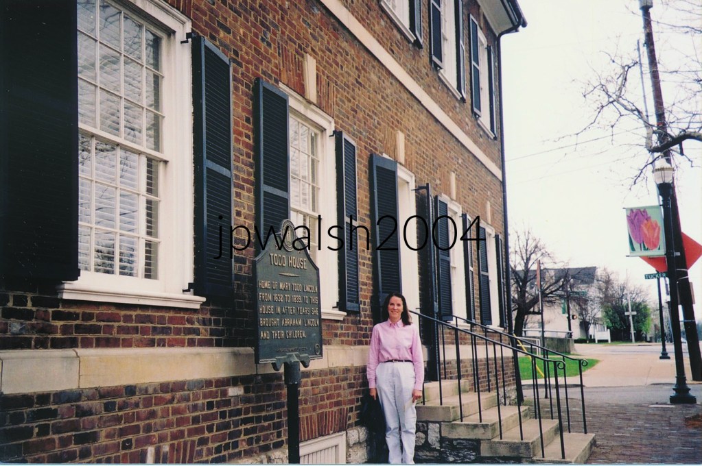 April 2004. Todd House. Lexington, Kentucky. Between 1832 and 1839 this was the home of Mary Todd (Lincoln) (1818-1882) as a teenager. Later, when Mary Todd married Abraham Lincoln, he and their children came to visit the in-laws here. The house was built between in the first decade of the 19th century between 1803 and 1806 or thereabouts, and was an inn and tavern until it was bought by Mary Todd’s father. Mary Todd Lincoln in 1846. Public Domain. Mary Todd was 23 years old when she married 33-year-old Abraham Lincoln in Springfield, Illinois on November 4, 1842. Their four sons were all born in Springfield. see – https://www.mtlhouse.org/timeline – retrieved January 28, 2025.