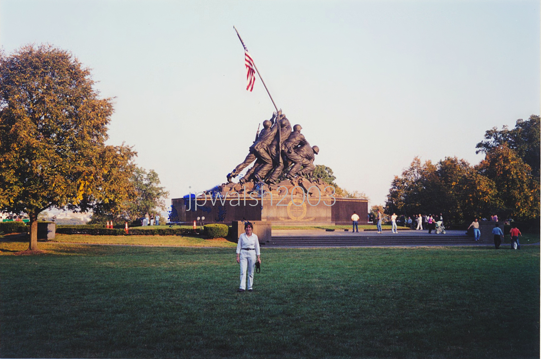 October 2003. US Marine Corps War Memorial, Washington, D.C. 784mb. The centerpiece of the memorial is a colossal sculpture group by Felix Weihs de Weldon (1907-2003) depicting the six Marines who raised the second and larger of two U.S. flags atop Mount Suribachi on Iwo Jima on February 23, 1945. The memorial was designed by Horace Whittier Peaslee, Jr. (1884-1959). October 2003. US Marine Corps War Memorial, Washington, D.C. 883mb. The image of the memorial was based on an iconic AP photograph by Joe Rosenthal (1911-2006) taken on February 23, 1945 of the raising of the U.S. flag at the top of Mount Suribachi at the start of the 5-week Battle of Iwo Jima (February 19- March 26, 1945). The photograph was flashed around the world for the first time on Sunday, February 25, 1945, and instantly became a symbol of the American war effort in the Pacific Theatre during World War II.