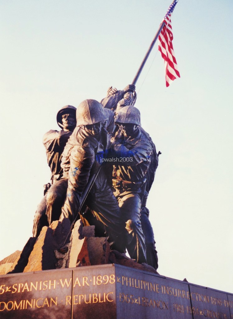 October 2003. US Marine Corps War Memorial, Washington, D.C. 524mb. The six marines who raised the flag on Iwo Jima have all been identified and include a sergeant, 2 corporals, and 3 privates first class. Unveiled in November 1954, the Marine Corps War Memorial was dedicated to all Marines who have given their lives in the defense of the U.S. since 1775. (70)