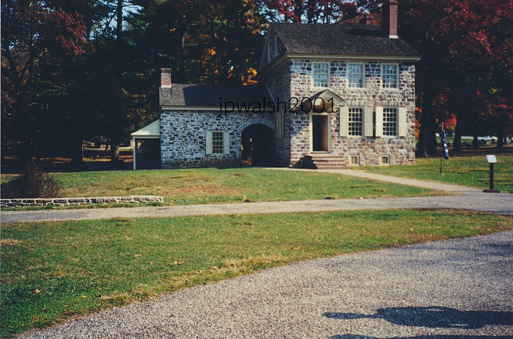 June 2001. Valley Forge Historical Park, Valley Forge, Pennsylvania. During the American Revolutionary War, the Continental Army encamped at Valley Forge between December 1777 and June 1778. This stone house erected between 1757 and 1773 by the family of Isaac Potts served as General George Washington’s headquarters. After Washington’s defeat to the British in the Battle of Brandywine in September 1777, the Second Continental Congress was forced to flee Philadelphia as Washington’s army of 12,000 soldiers and others withdrew near to the city at the strategic location of Valley Forge chosen by Washington. The army’s third winter encampment was marked by disruptions in the supply line. On December 23, 1777 Washington wrote the President of the Continental Congress telling him how his commanders barely quelled a “dangerous mutiny” because of the lack of provisions, such as food and clothing. Washington was well aware of these insufficient material conditions leading to malnutrition and disease that resulted in the deaths of 2,000 soldiers (more than 15%) during the encampment. Washington warned Congress: “Unless some great and capital change suddenly takes place in that [supply] line, this Army must inevitably be reduced to one or other of these three things, Starve, dissolve, or disperse, in order to obtain subsistence in the best manner they can.” While a lowpoint for the Continental Army, Washington’s communications resulted in a Congressional delegation visiting Valley Forge in late January 1778 which led to the establishment of the office of Quartermaster General in March 1778 with Maj. Gen. Nathanael Greene appointed to head that vital administrative post.The March to Valley Forge. 1777. By William Trego, 1883.Museum of the American Revolution, Philadelphia.