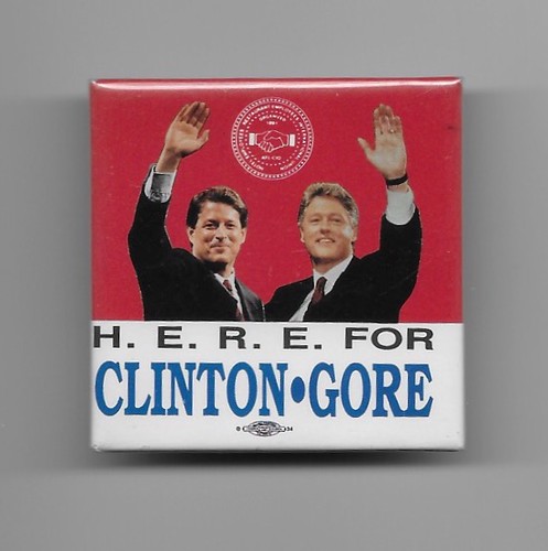 October 20, 1992. Chicago. Clinton-Gore Rally, The Democratic ticket for U.S. president and vice president was joined by Hillary Rodham Clinton and Tipper Gore. Also on the platform was Democratic Senate candidate, Carol Moseley Braun. All these candidates won their respective races that year. Clinton-Gore served two terms and Moseley Braun who was the first Black woman to serve in the U.S. Senate and first female U.S. Senator from Illinois served one term. see – https://www.c-span.org/video/?c4090960/user-clip-clintongore-campaign-speech-1992 – retrieved June 20, 2023.75%Clinton-Gore campaign button. “Bill Clinton – Al Gore Union campaign button HERE” by Mpls55408 is licensed under CC BY-NC 2.0.