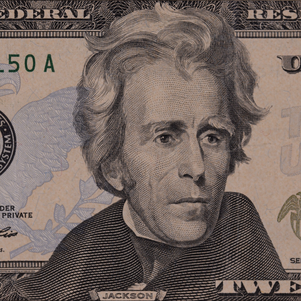 April 2004. The tomb of Andrew and Rachel Jackson is located in the Hermitage garden east of downtown Nashville, Tennessee. The 7th U.S. president owned the 1000-acre Hermitage home and plantation from 1804 until his death in 1845 (Rachel died in 1828). During the Civil War the area surrounding the tomb was described as “all together a dark and secluded spot.” (Pvt. Joseph C. Taylor, May 5, 1863). Enslaved men, women, and children worked at the Hermitage – 110 at Jackson’s death – and were principally involved in growing its major cash crop, cotton. The Hermitage is a National Historic Landmark. Andrew Jackson, 7th president of the United States, is the face on the $20 bill. “One Jackson” by Carbon Arc is licensed under CC BY-NC-SA 2.0.