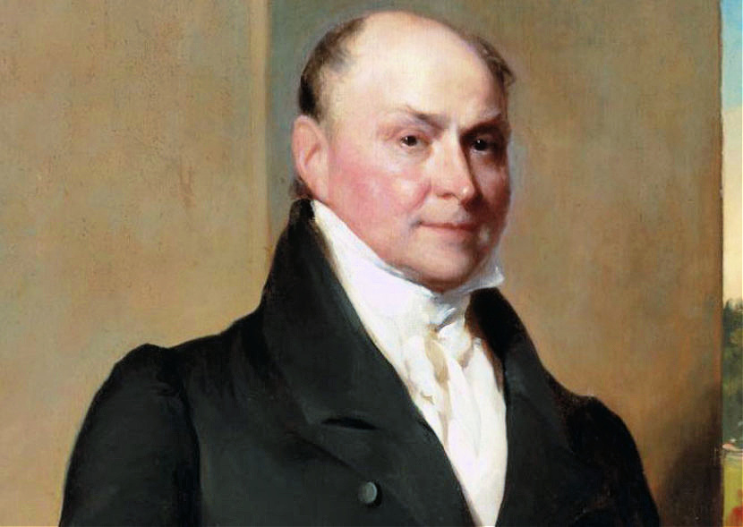 July 1989. John Adams Old House at Peacefield, 135 Adams Street, Quincy, Massachusetts. Home to four generations of the Adams family and the Stone Library. 70%. John Q. Adams (1767-1848), 6th U.S. President. Portrait (detail) by Gilbert Stuart and Thomas Sully, 1828, Harvard University Portrait Collection, Public Domain. John Adams (1735-1826), 2nd U.S. president and Abigail née Smith Adams (1765-1818). Public Domain.