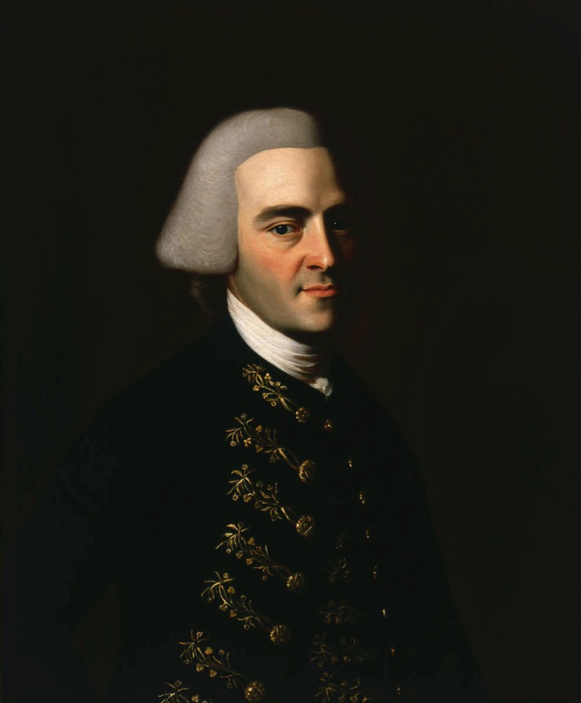 June 2007, Gunston Hall in Mason Neck, Virginia, is the historic estate of Founding Father George Mason (1725-1792) built near the Potomac between 1755 and 1759. George Mason was the primary author of the Virginia Declaration of Rights in 1776 and the Virginia Constitution. Mason was a proponent of limiting government tyranny and protecting citizens’ rights. In 1776 fellow Virginian Thomas Jefferson paid homage to Mason by incorporating his ideas and language from the Virginia Declaration of Rights into the Declaration of Independence. George Mason was a leader in the constitutional convention in 1787 and its ratification debates. He declined to sign the Constitution without a Bill of Rights which fellow Virginian James Madison introduced in the First Congress in 1789 and that were ratified in 1791. In addition to being a shrewd political thinker and businessman, Mason was a family man and a slaveowner. George Mason inherited 35 people from his father’s estate and ultimately enslaved at least 300 people, many of whom lived on this property on Mason Neck. His will did not manumit, or bequeath freedom to, any of the people Mason kept in slavery though Mason’s writings reveal his intense dislike of the institution of slavery including, in 1774, his support to end the slave trade. The Mason family owned the mansion until 1867. In 1912 it was purchased by a Marshall Field & Company executive whose wife was a member of The National Society of The Colonial Dames of America. The couple restored the mansion to its original plan and gifted it to the Commonwealth of Virginia in 1949 such that it would be administered by the Colonial Dames. The Mason family came to Virginia in the mid-17th century from Gunstone (and thus the Hall’s name) in South Staffordshire. Like many others in that area of England near Birmingham the Masons supported the Crown during the 1642-1651 Wars of the Three Kingdoms. When the Royalists were defeated, the Masons emigrated to Virginia. see – https://gunstonhall.org/visit/guide/ – retrieved June 7, 2025.George Mason (1725-1792) Founding Father of the Bill of Rights, 1750. Public Domain.