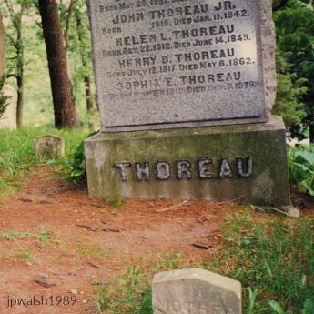 Ralph Waldo Emerson (1803-1882) gravesite, Sleepy Hollow Cemetery, Concord, Mass. Emerson has been called “the most iconoclastic thinker in nineteenth century America” (Geary’s Guide to the World’s Great Aphorists, p. 83). A minister by inkling and training, Emerson graduated from Harvard University in 1821 and became an ordained minister in 1829. He abandoned traditional Christianity and writing sermons after his first wife’s death in 1831 and, traveling to England and back, embraced Transcendentalism and writing essays exploring the nature of life and death. These he read aloud to enthusiastic audiences around the country. Emerson published his first book, Nature, in 1836 and a second and third volume of essays in 1841 and 1844. From 1842 to 1844, Emerson was editor of The Dial, a Transcendentalist journal. During his lifetime, Emerson gave thousands of lectures upsetting more than a few with his views on, for example, Native American policy (he wrote against Cherokee removal in the 1830’s) and slavery (he condemned the Fugitive Slave Law of 1850 and supported abolitionist political candidates in New England).