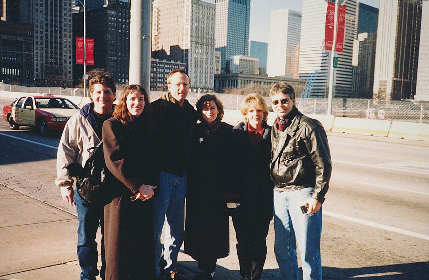 December 1998. Chicago. Behind us is the construction site for Millennium Park. Ground was broken in 1997 for the project in a northwest corner of Grant Park and completed in 2004. In 1999 it was announced that Anish Kapoor’s Cloud Gate (“The Bean”) – a mirrored stainless steel object roughly 66 feet long – would be installed in the park with the expectation that it would attract foot traffic. The Bean was unveiled in 2006. By 2016 Millennium Park was the most-visited site In the Midwest as it boasted more than 13 million visitors that year and generated about 20,000 hospitality jobs. see -https://www.cbsnews.com/chicago/news/millennium-park-midwest-tourism/ – retrieved February 19, 2024. (30)