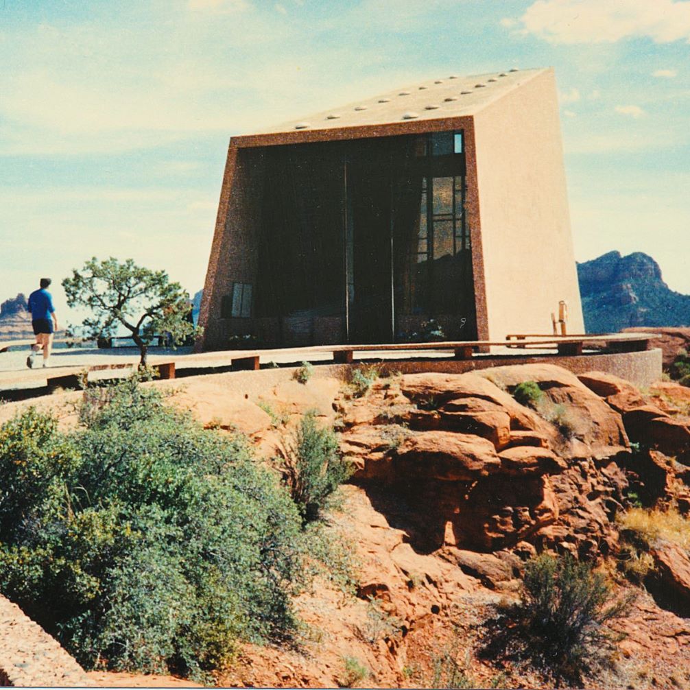 May 1989. Sedona, Arizona. 1.14 mb. By way of the leadership of then-Gov. Bruce Babbitt (1978-1987), a 286 acre area of a vast red sandstone canyon was designated as Red Rock State Park. It opened and was dedicated in October 1991. 1.14mb May 1989. Holy Cross Chapel (1957), Sedona, Arizona. It was inspired and commissioned by local rancher and sculptor Marguerite Brunswig Staude (1899-1988) and dedicated in 1957. Architects for the project were Richard Hein and August K. Strotz of Anshen & Allen. Since the chapel is built on Coconino National Forest land a special use permit was needed which was secured for the project by Senator Barry Goldwater. The construction supervisor was Fred Coukos who built the chapel for $300,000 (about $3.5 million in 2024 dollars) over about 18 months. see- https://www.findagrave.com/memorial/212538307/marguerite-staude and https://www.chapeloftheholycross.com/history – retrieved February 20, 2014. May 1989. Sedona, Arizona. 1.28mbThe author (left), as Communications Director of a national insurance association, was tasked to invite and facilitate the visit of Arizona Governor Bruce Babbitt (center) to its annual meeting in May 1989. The former governor and 1988 presidential candidate gave the keynote address at The Registry Resort in Scottsdale, Arizona. see – https://azstateparks.com/red-rock/explore/park-history – retrieved February 20, 2024. Fair use.